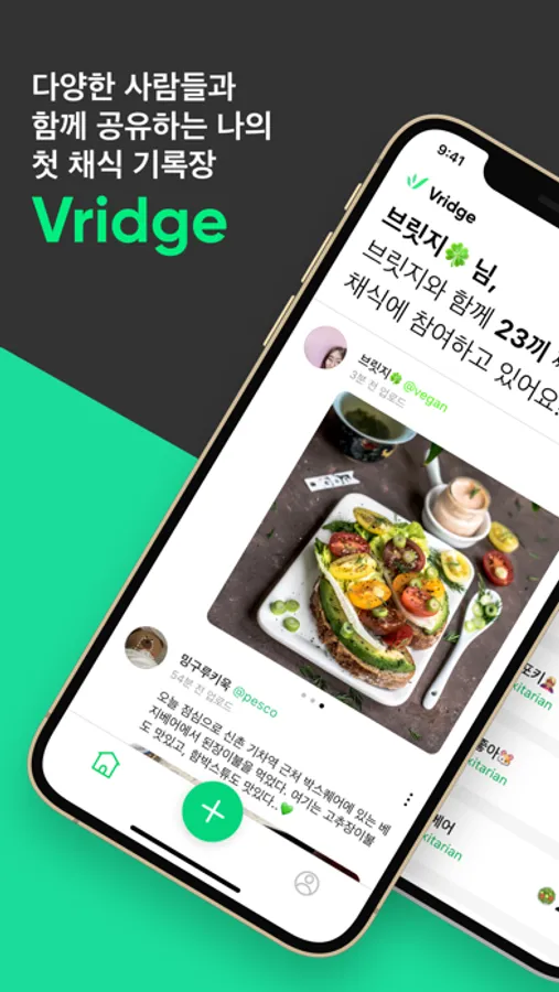 브릿지는 다양한 사람들과 함께 공유하는 나만의 채식 식단 기록장입니다.