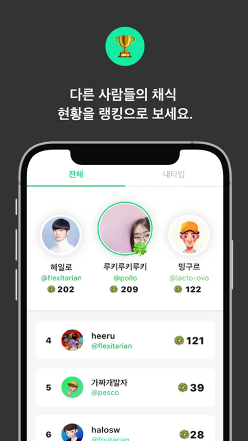 랭킹을 통해 나와 브릿지 유저들의 채식 현황을 살펴보세요.