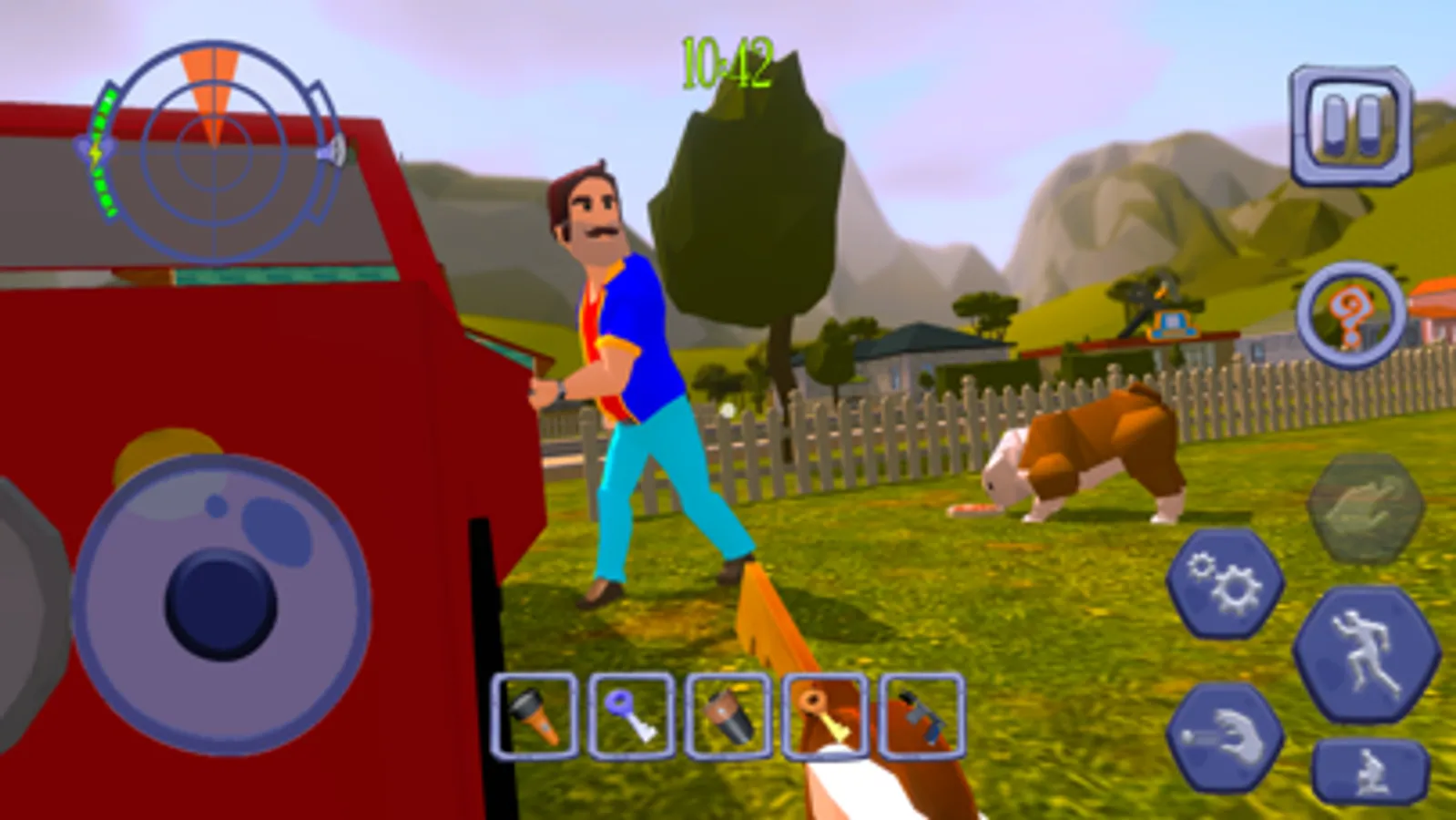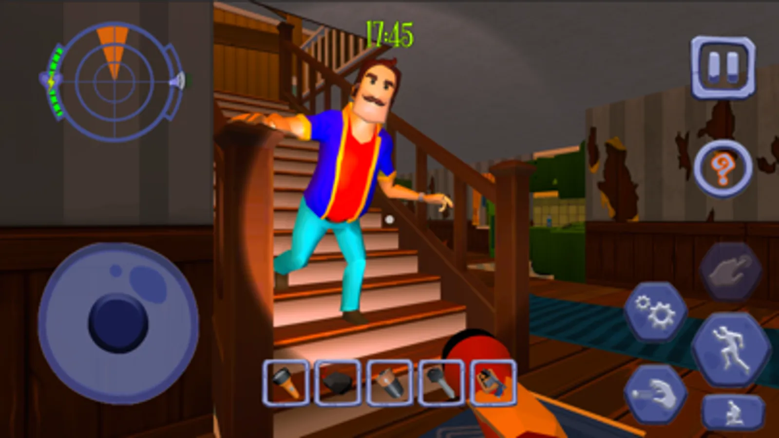 After that you decided to get into the courtyard of his house again. And this time you found a note from your missing friend! In it, he wrote that your neighbor kidnapped them and kept them locked up. You must find and rescue your friends. Uncover the mystery of your terrible strange neighbor and help your friends to survive!