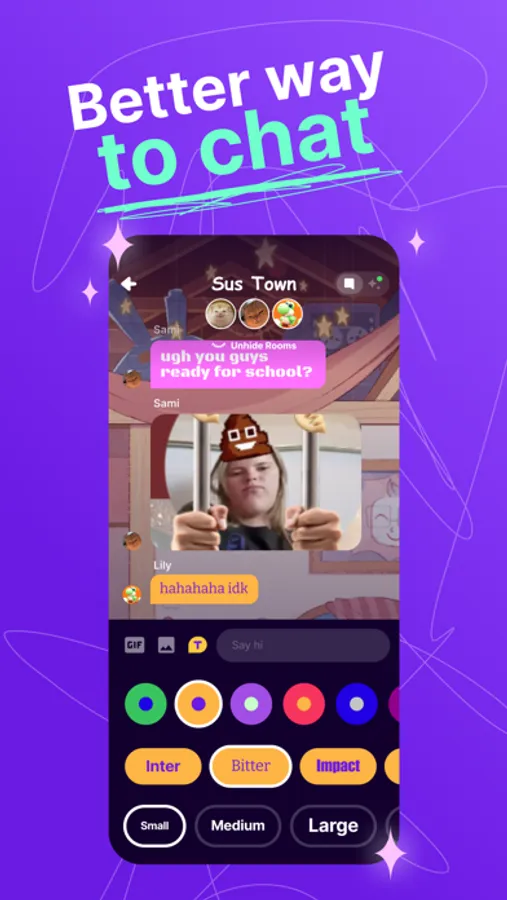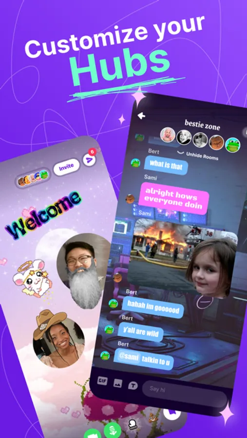Here is where you and your friends get weird and have fun together online. You shouldn’t hang with your friends in a gray box. Voice, Video and Text Chat with friends in spaces that look and feel however you want! There’s no limit to the number of rooms or customizations, so every place in Here will feel just right. Use Here every day to express yourself, goof around and stay close with the people you care most about: your besties.