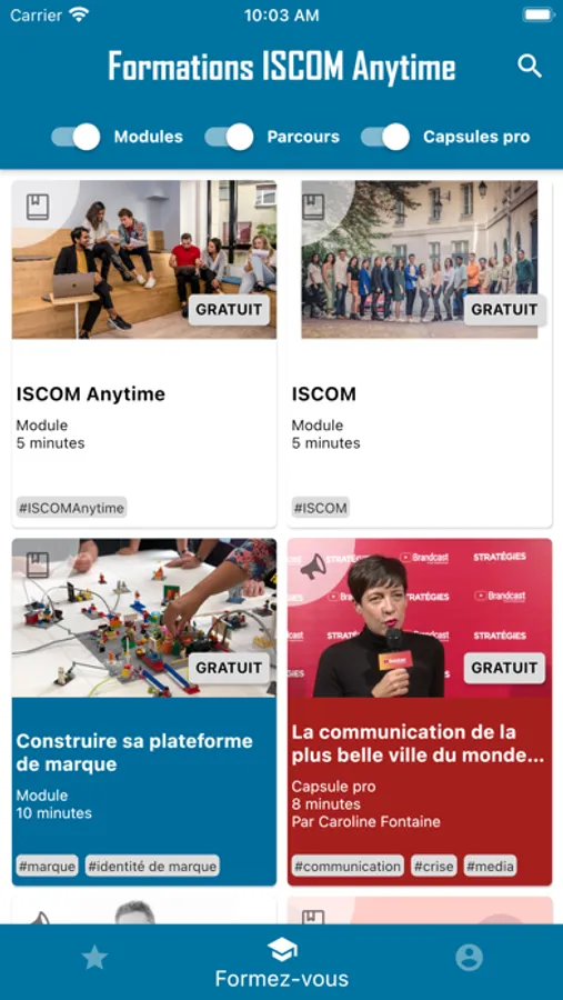 ISCOM Anytime propose des modules de micro-learning qui permettent aux futurs professionnels et professionnels de tout secteur de découvrir et/ou se renforcer sur des compétences en communication.