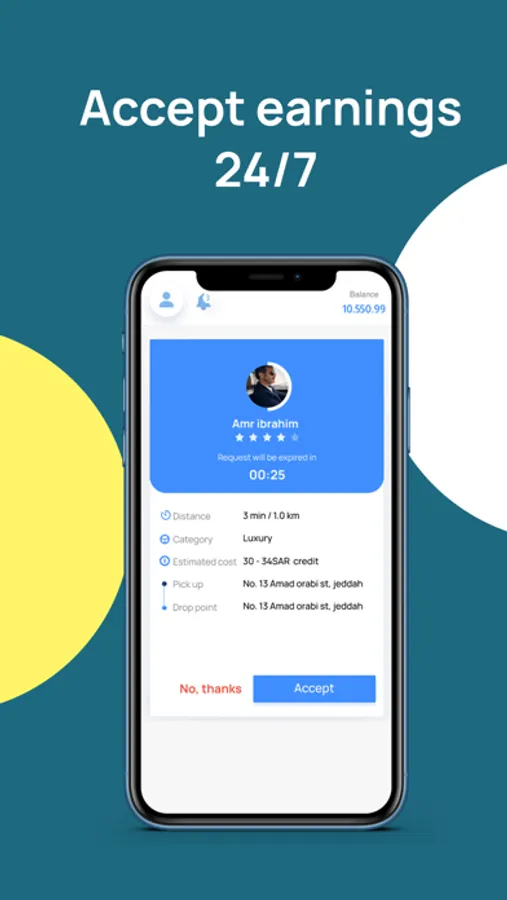Be a Rakeb partner, and you can accept earnings at any time you prefer 24 hours/day, 7 days/week.