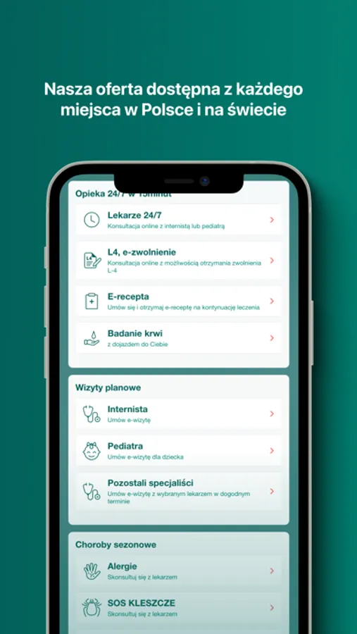 - szerokie grono lekarzy specjalistów, m.in. internista, pediatra, lekarz medycyny pracy, a także lekarz dermatolog, laryngolog czy endokrynolog;