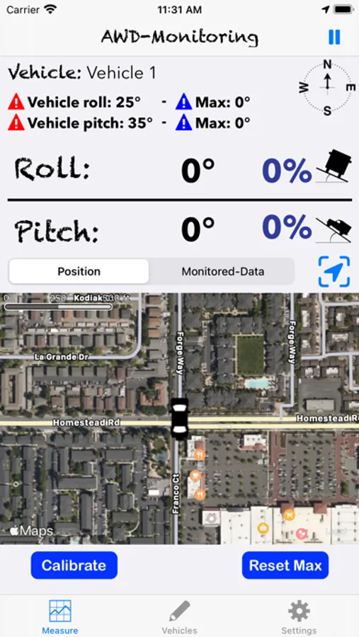 With AWD-Monitoring, you are safer because it displays Roll and Pitch gauges and warns you when you come into the critical area to reduce the risk of overturning. You can determine the tolerance for the warning of the crucial area yourself.