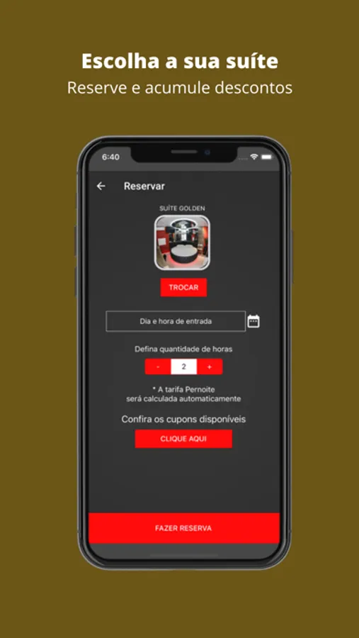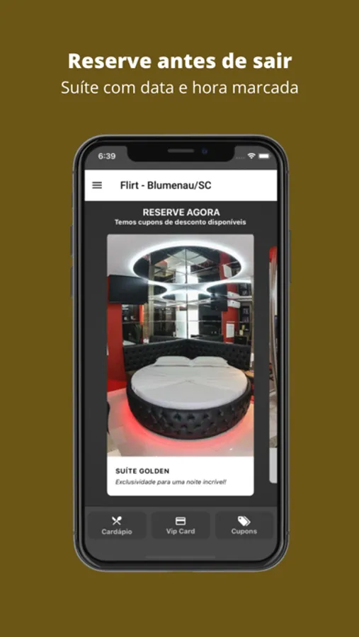 Baixe nosso App, faça seu cadastro e ganhe um crédito para utilizar na sua primeira reserva. Ir ao Flirt Motel nunca foi tão fácil. Você reserva a sua suíte antes de sair de casa, do trabalho ou da balada, acumula descontos para utilizar na sua próxima estada e muito mais.