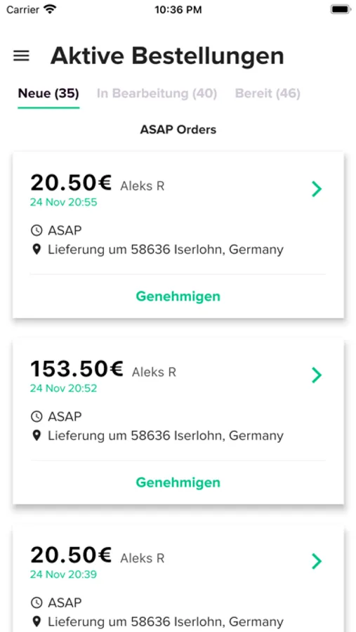 * Erhalten Sie neue Bestellungen und ändern Sie deren Status entsprechend.