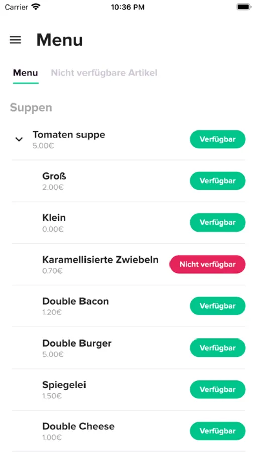 * Sehen Sie sich Ihr Menü an und stellen Sie den Benutzern Produkte zur Verfügung.