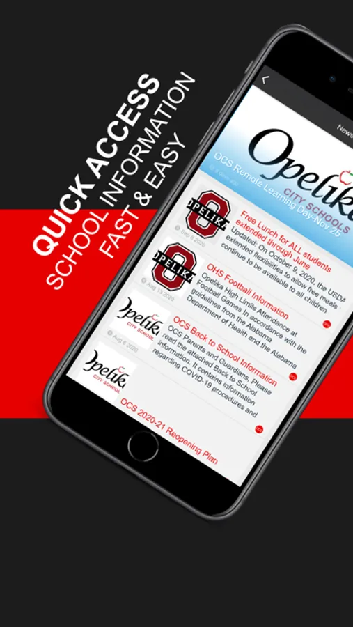 With the Opelika City Schools mobile app, your school district comes alive with the touch of a button. Easily navigate through current news and events or check out the latest updates with social media. Quickly retrieve contact information, sporting scores, lunch menus, and more! It’s your school district available at your fingertips.