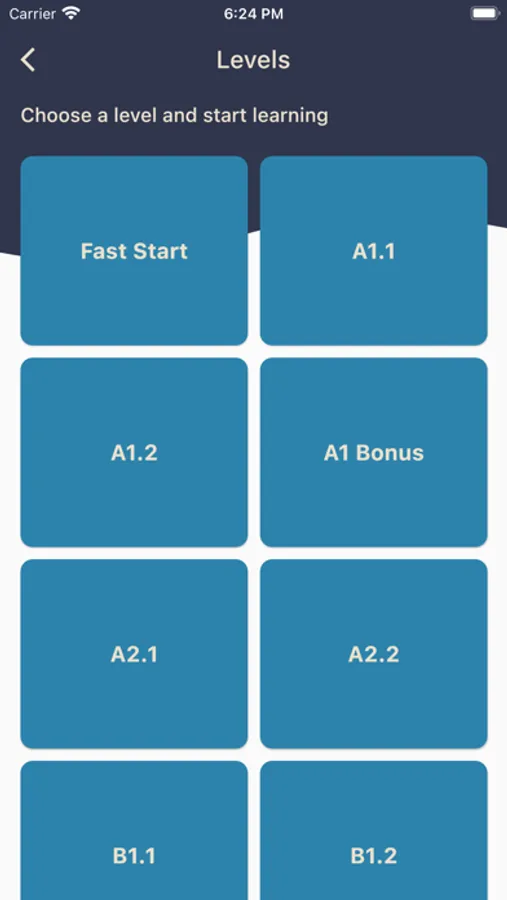 Lessons are gathered into levels. Example of topics: