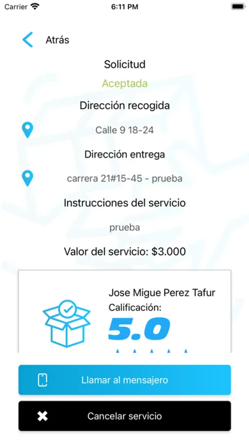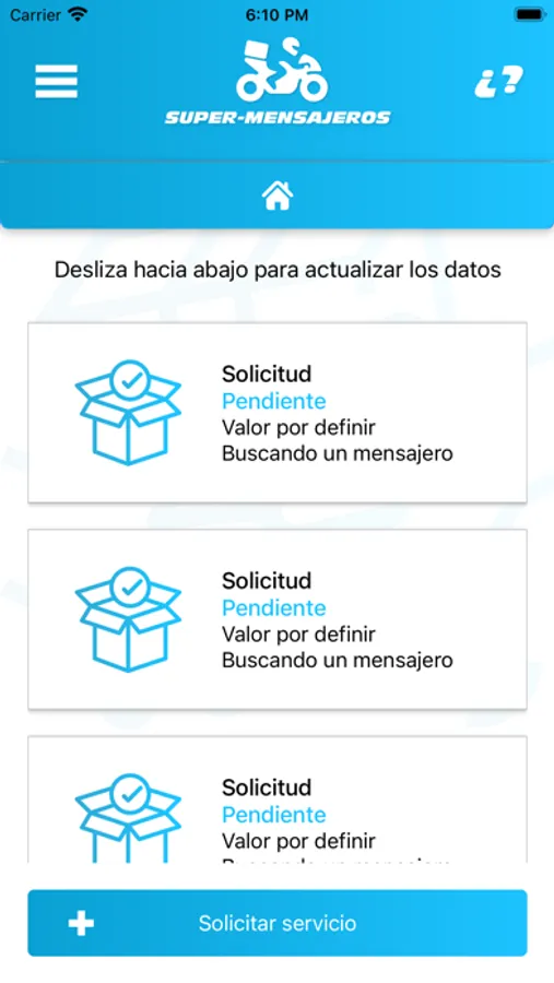 Se enviará una notificación con la información del Súper Mensajero que tiene el gusto de atenderte, hasta podrás ver su foto para tener más seguridad, te diremos el valor aproximado del servicio y por si fuera poco, por cada 12 servicios te daremos un Domicilio Gratis.