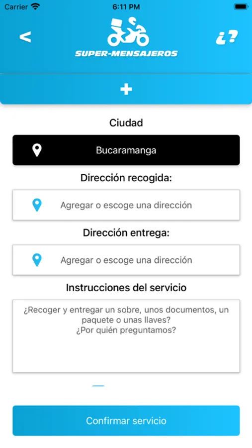 Con tan solo unos clicks podas pedir un Súper Mensajero, el cual te ayudara en instantes, ya sea que necesites enviar o traer un paquete, realizar una compra, pagar un servicio, efectuar una consignación, formalizar un trámite, reclamar un medicamento o cualquier cosa que desees, además podrás programar tus domicilios con antelación si lo solicitás.