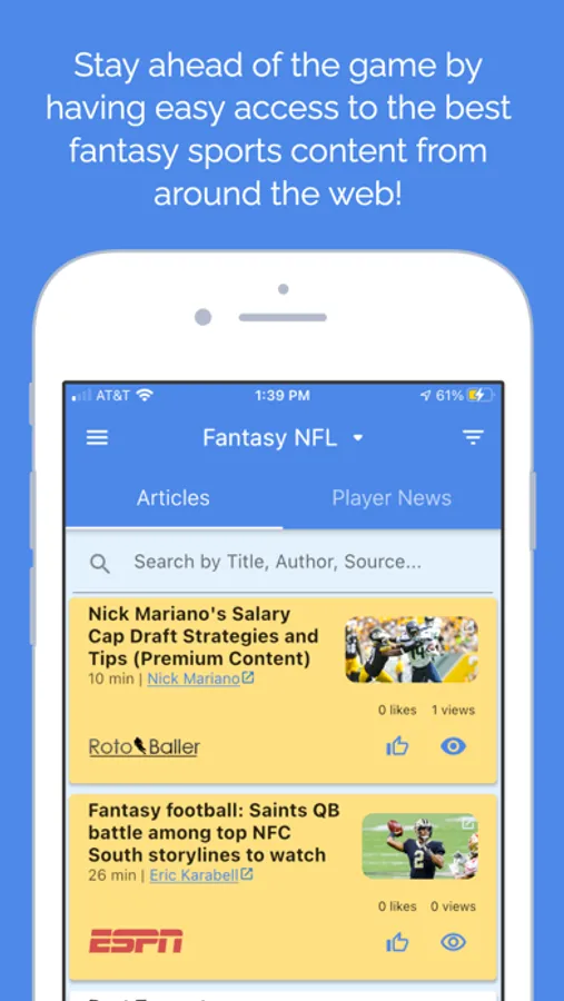 Search, sort, and filter fantasy NFL, NBA, & MLB content to take down your league or win big in daily fantasy sports (DFS) contests. No more excuses!