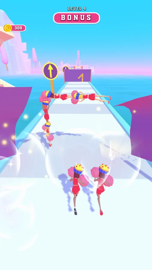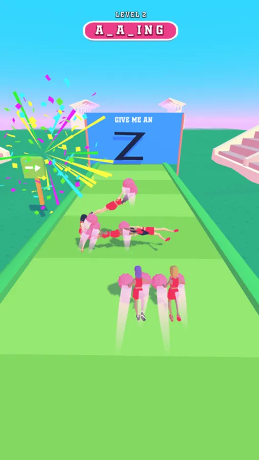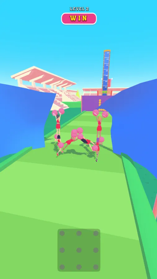 You control a group of cheerleaders making awesome stunts to the crowd.
