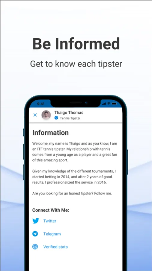 Each tipster profile has a section with general information about the service and the tipster behind it, as well as an optional section of frequently asked questions, where you can answer most of your questions about the tipster’s service. More information about each tipster and their services translates into better decision making!