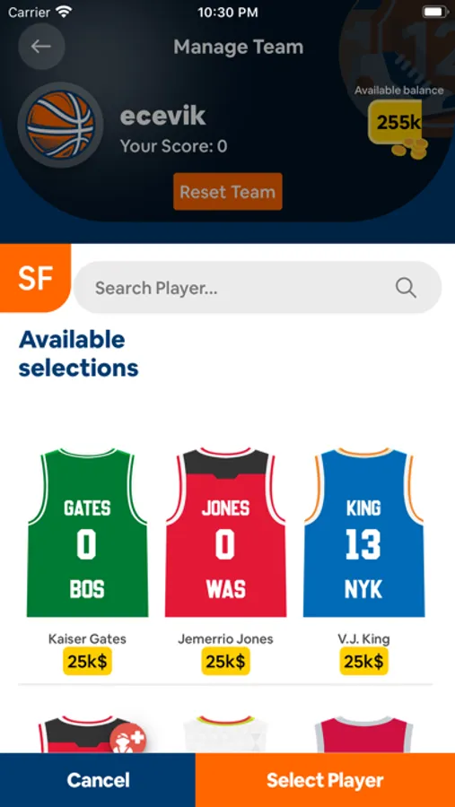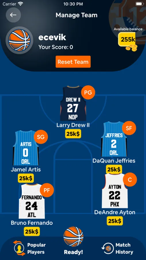 Pick your players and build a new team. Every player has a price and you need to build your team while staying under the salary cap. You can send a challenge request to your friends. Also, you will be in World wide ranking automatically and see your rank...