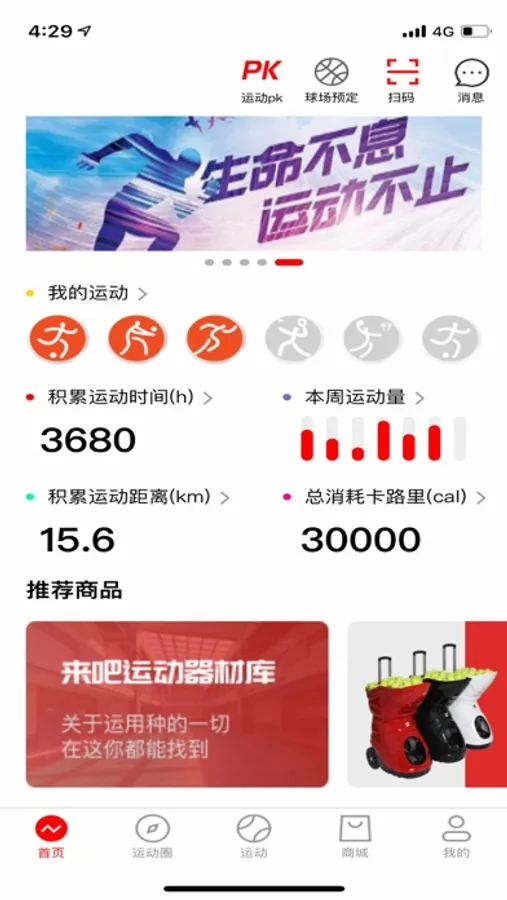 来吧运动是一款统计运动数据, 发球机产品控制, 运动社交,运动装备购物等功能为一体的运动APP