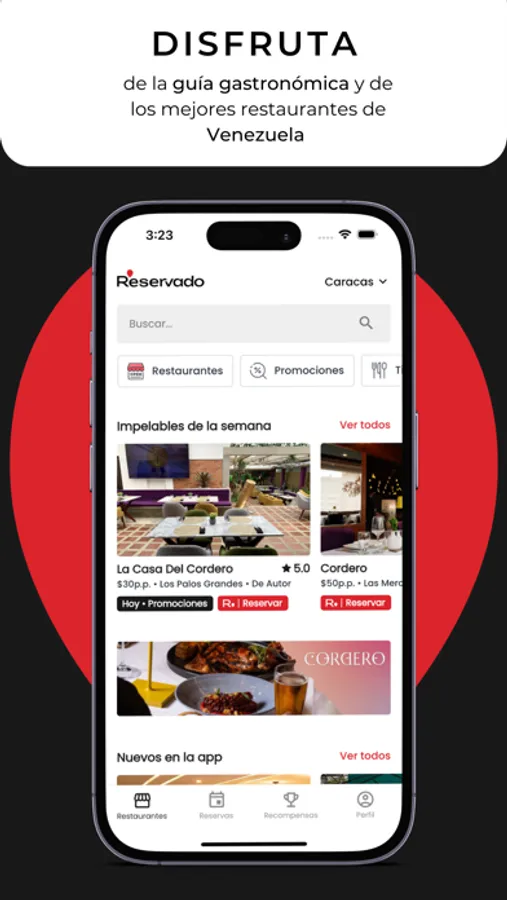 Reservado te brindará experiencias únicas con la que podrás reservar en los mejores restaurantes de Caracas, Valencia y Lechería. Encuentra increíbles restaurantes que satisfagan tus gustos y necesidades. Tendrás la posibilidad de visualizar el menú de todos los restaurantes para incentivarte a probar platos novedosos que nunca antes habías degustado.