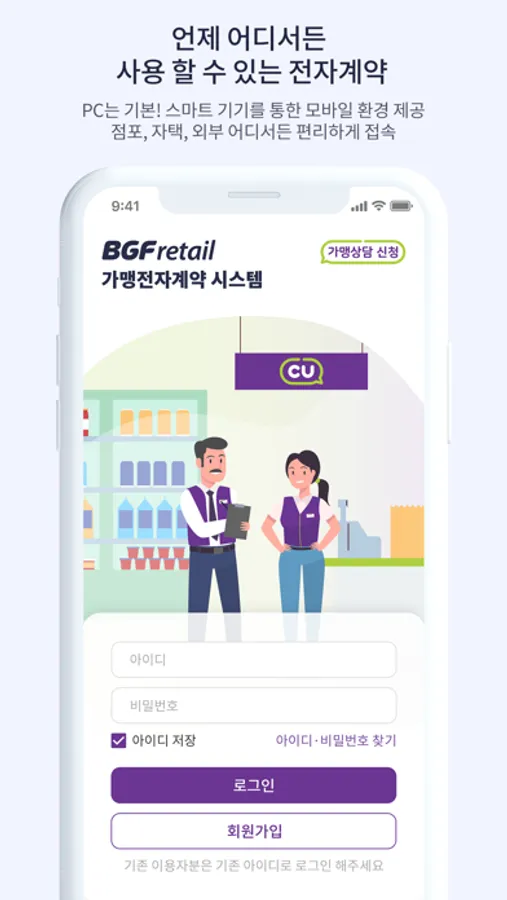 CU편의점 가맹계약을 위한 모바일 서비스입니다.