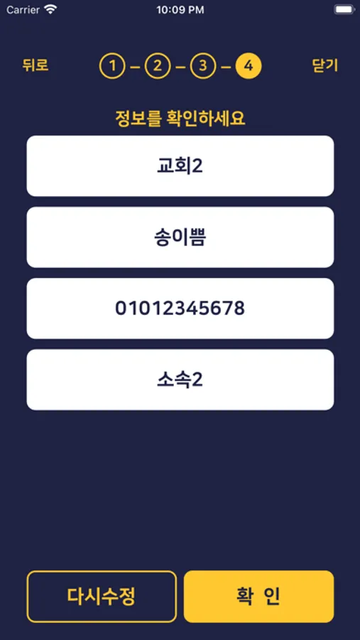 1. 앱을 다운 받은 후 실명인증을 거쳐 교회를 등록합니다.