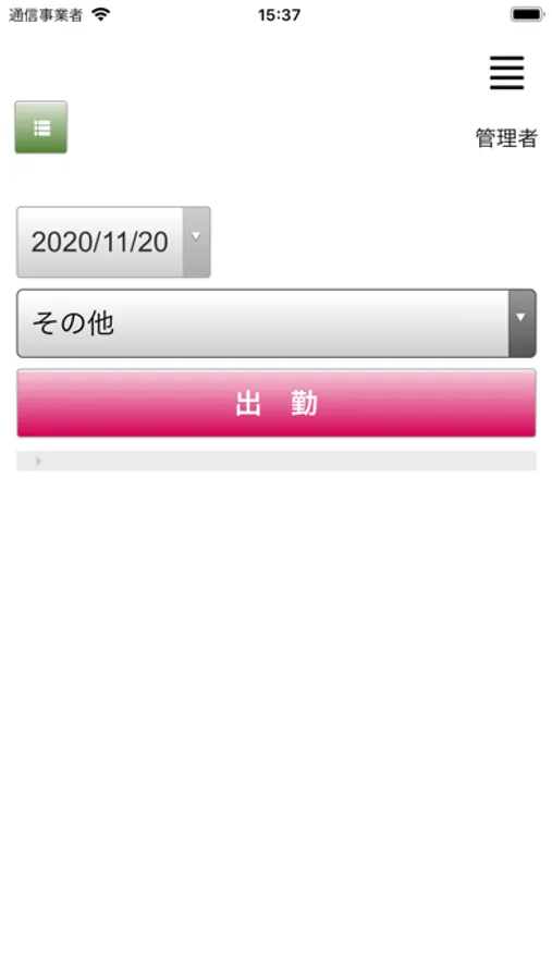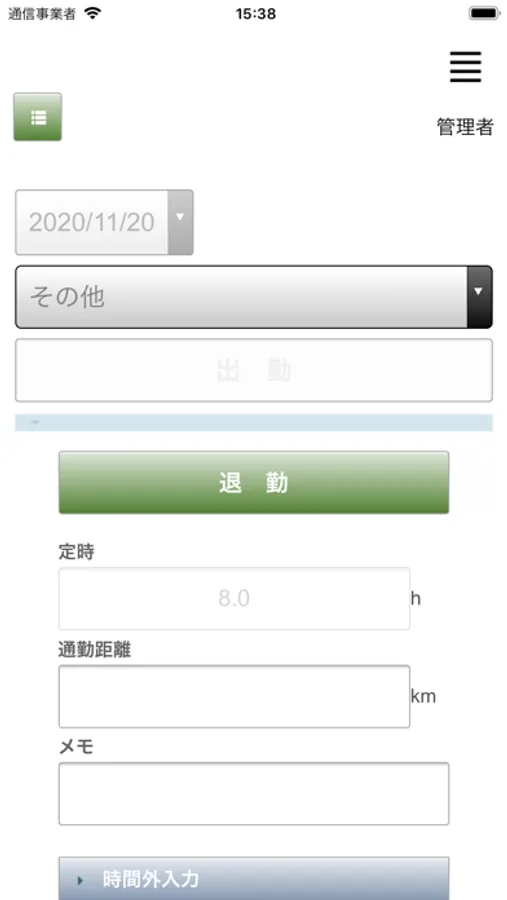 出勤ボタンを押すと、詳細情報の記入と退勤が可能になります。