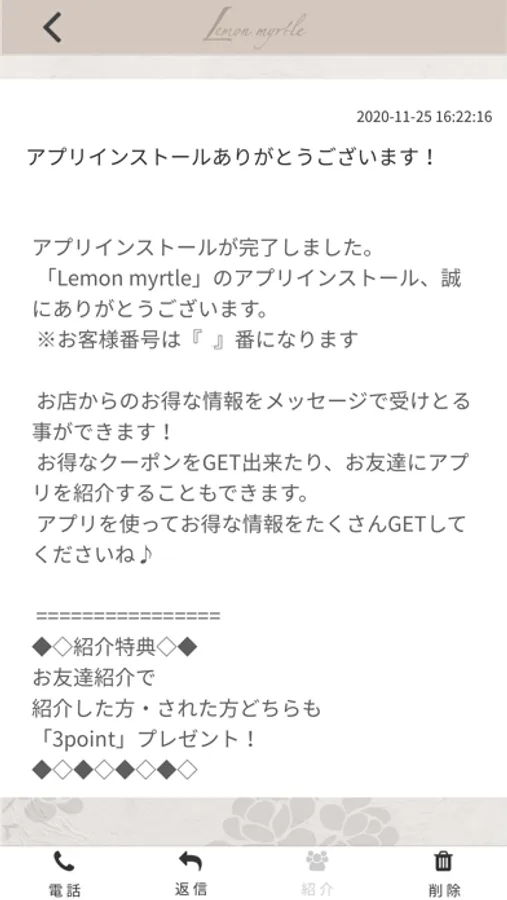 Lemon myrtleのアプリをSNSを通じてお友達に紹介する事ができます。