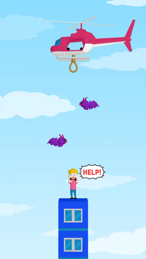 Once the boy holds onto the rope, it's time to touch the screen and pull up the rope!