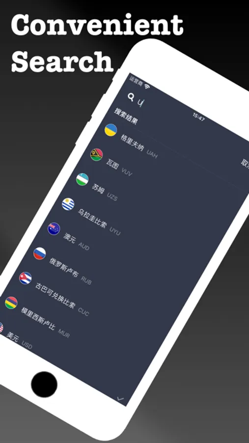 4. Convenient capabilities: intelligent positioning, automatically displaying local currency; convenient search, supporting fuzzy search of currency name/currency code.