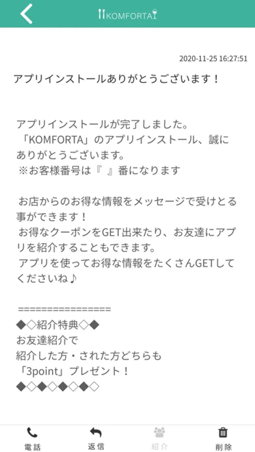 KOMFORTAのアプリをSNSを通じてお友達に紹介する事ができます。