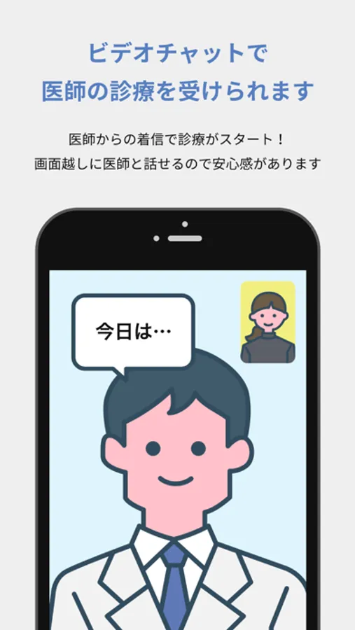オンライン診療とは、お手持ちのスマホやタブレットを用いてインターネット上で医師の診察を受けることができるサービスです。