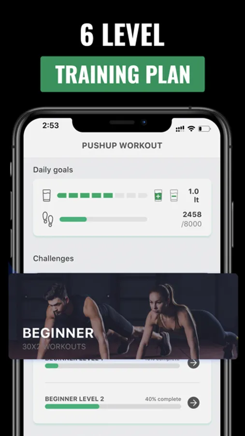 Take a 30-day push-up to exercise challenge to reach 100 push up in a month. The app will be your push-ups coach with an audio and video guide to motivate you to do a daily routine push up a workout at home with no equipment required. 30-day push-ups challenge provides you a simple workout plan with 6 levels of exercises starting from beginner level to advance level.