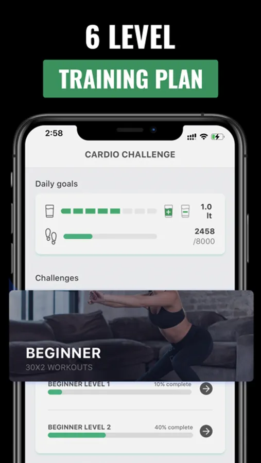 A 30-day Cardio workout challenge app is designed by pro cardio fitness trainers to help you to keep your heart healthy. The app guide you step by step on how to do simple HIIT cardio workouts, Cardio exercises at home for men, and women with no equipment.