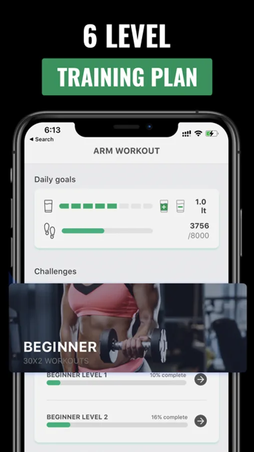 3) Select your fitness level out of from 6 difficulty levels of arm exercise plan based on your workout routine