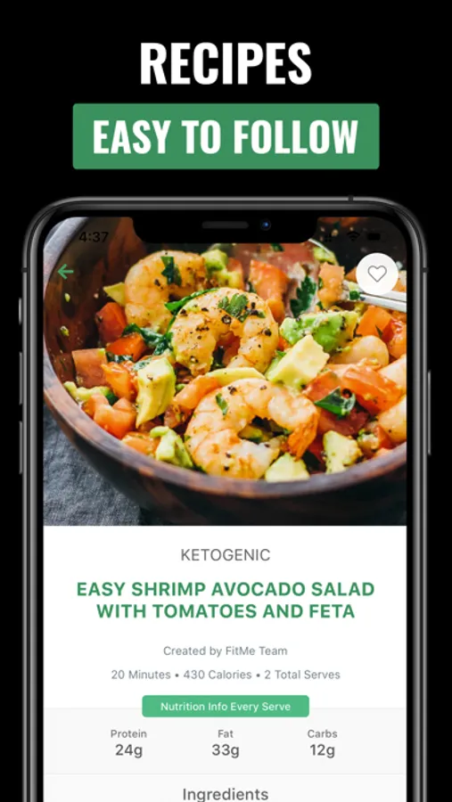 To complement your fitness journey App also provides a 30-day meal plan. In addition, the app is integrated with Apple Health to sync all your health and diet data. Thousand of recipes with fat-burning foods.