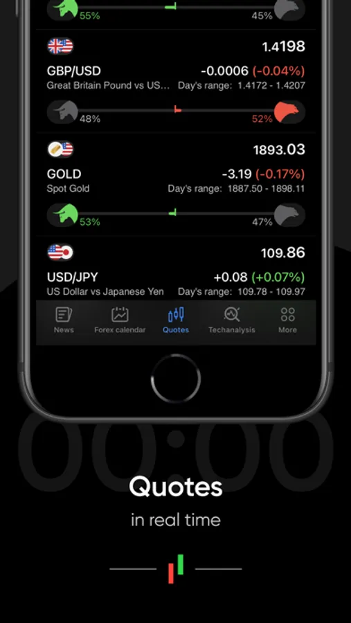 You can schedule an alert on changes in the financial market. Select the financial instrument you are interested in, the deal type and specify the target value of the course or traders’ positions. As soon as the specified asset level is reached, you will receive an instant push notification.