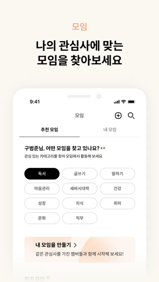 · 모임 선택이 고민된다면, 인기 모임과 추천 모임 참여를 추천합니다!