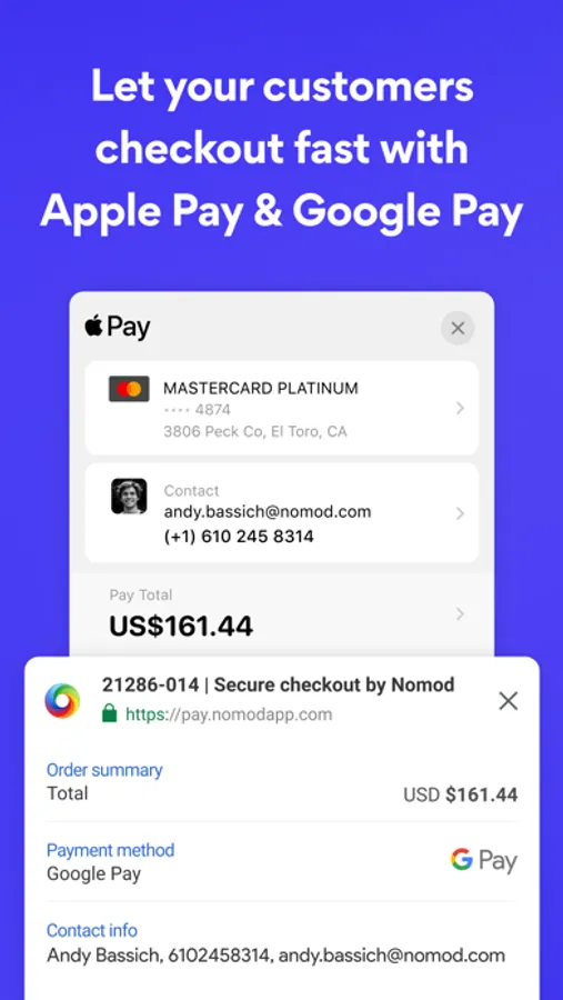 Use Nomod to allow your customers to pay online or in-person using payment links, Tap to Pay with iPhone, QR codes, Apple Pay, Google Pay, and cards from all major networks