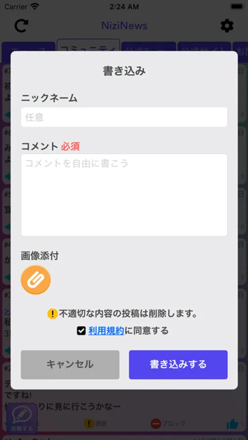 当アプリの書込み閲覧などすべての機能は無料でご利用いただけます。