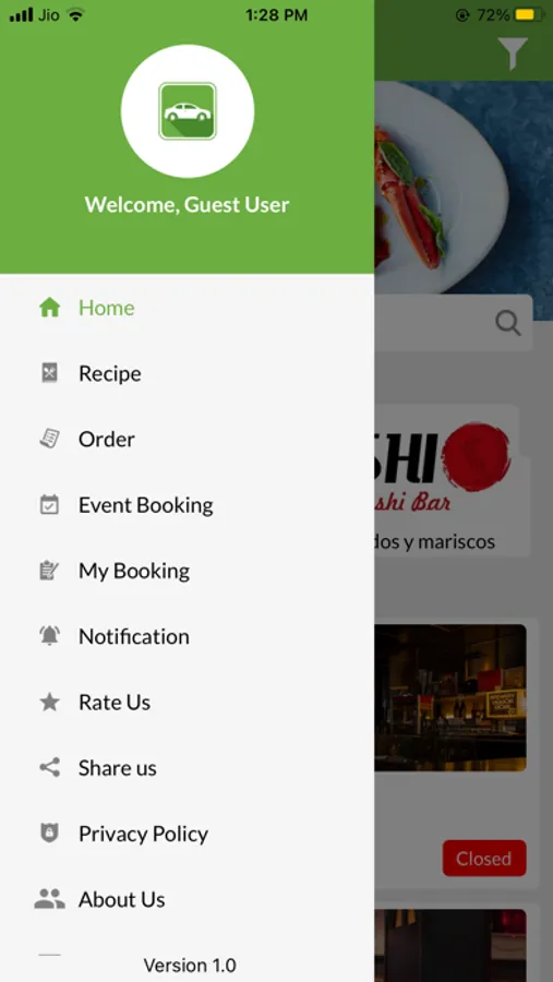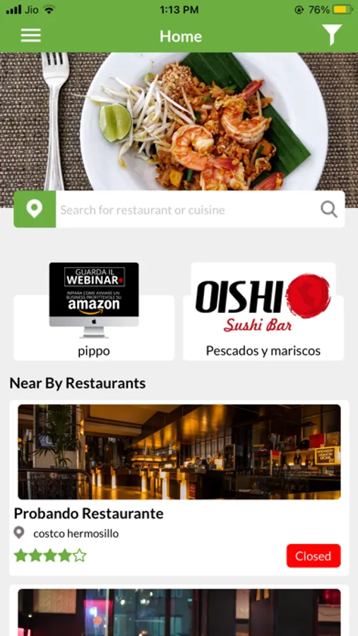 5. Navigate throughout sitemap and check for varieties of cuisines and dishes served by the restaurants without registering on the application