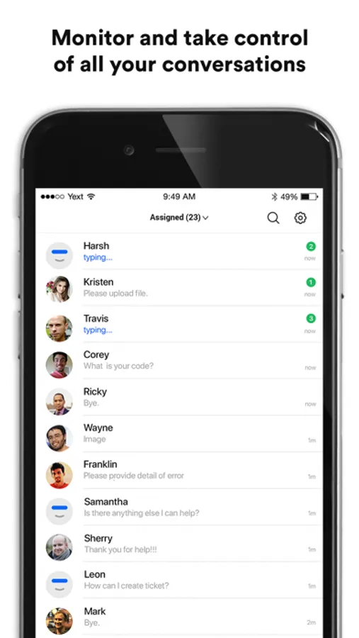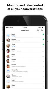 Monitor all conversations handled by your bots and agents in real-time. Seize an opportunity when you see a good lead matching your buyer persona, and seamlessly take control of that chat on the app.