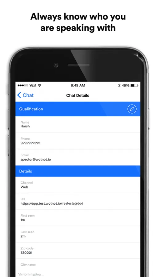 View and assign chats to your teammates based on the visitors' replies, and see more details about each visitor like city, country, zip code, and other qualification details.