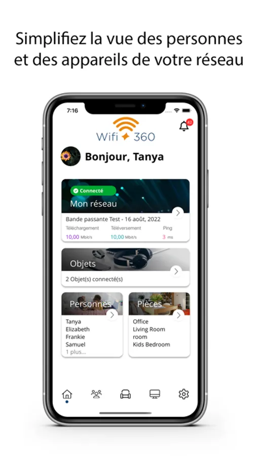 Le CCAPWifi360 propose des outils pour sécuriser et faire la gestion de votre réseau Internet sans fil à la maison. Protégez votre résidence avec les options sécurisées de votre application comme la gestion de vos mots de passe et du nom du réseau sans fil. L’application vous permet également d’appliquer un contrôle parental, de voir les appareils connectés et d’effectuer des tests de vitesse.