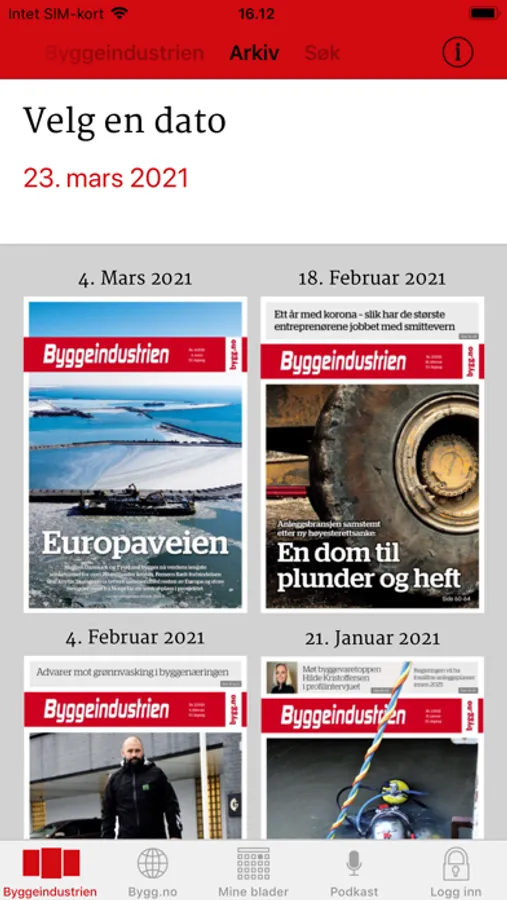 Du vil få tilgang til magasinet Byggeindustrien via en e-avisløsning (krever abonnement) med et søkbart arkiv tilbake til 1985. Du kan finne frem til enkeltutgaver eller hele årganger. Du kan også bli varslet om hver nye utgave som kommer ut. I tillegg kan du laste ned utgaver slik at de kan leses når du vil, også når du er offline. Bladet kan enkel leses via de fleste smarttelefoner og nettbrett.