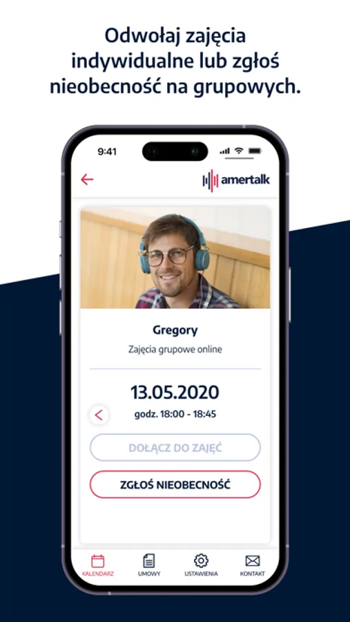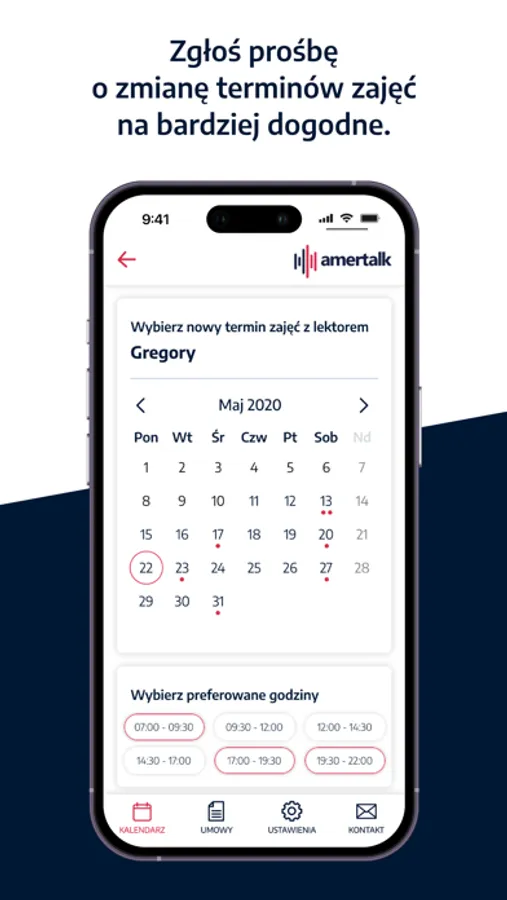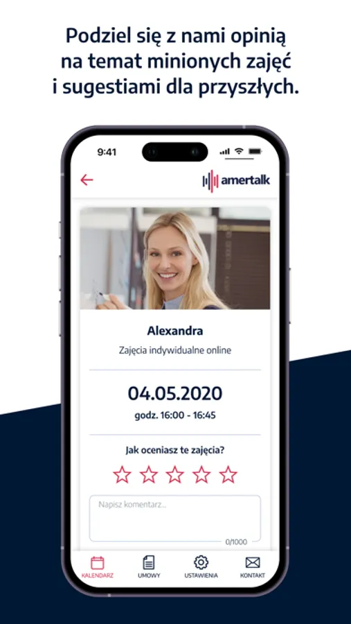 From now on, you will always have your schedule at hand, and you will find all the classes and their details in the Amertalk calendar. In the app, you can join online classes with american teacher without access to computer. Additionaly, you can rate every single lesson and submit a break or request the date change.