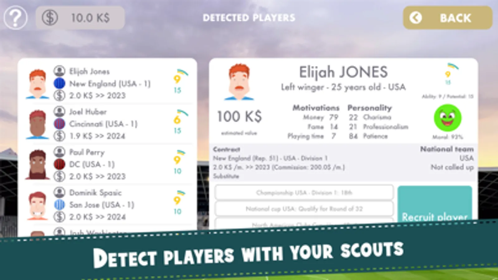 Recruit the best scouts who will find you young talent on the eve of hatching on the international scene.