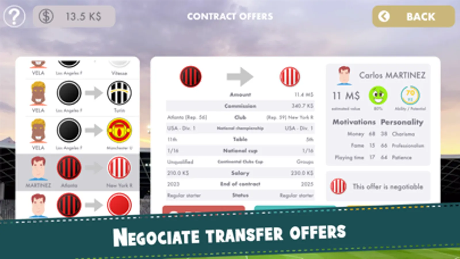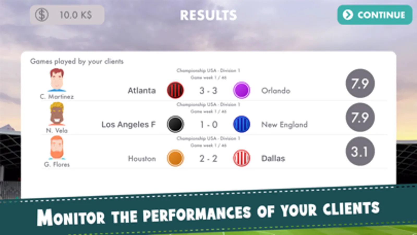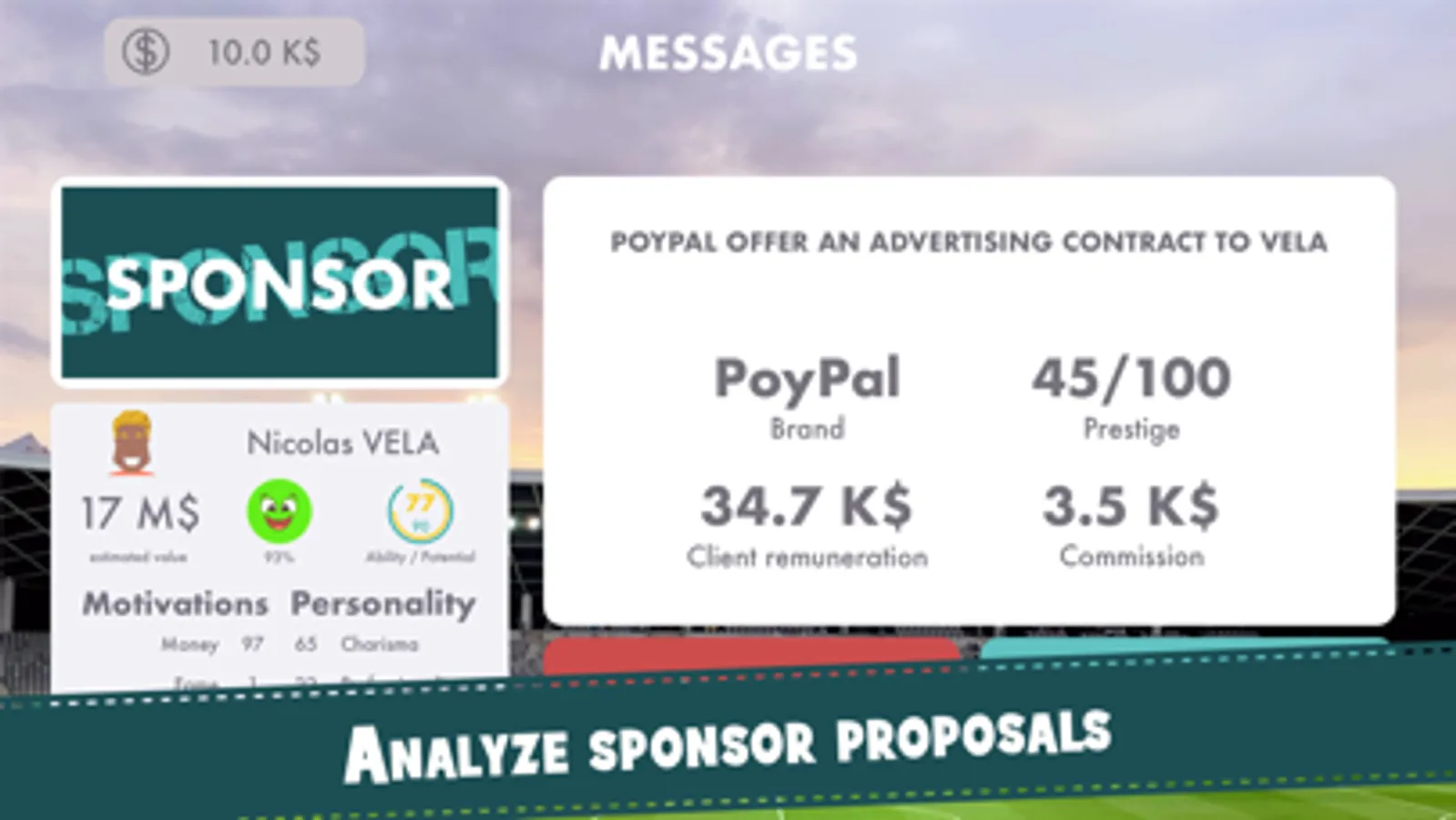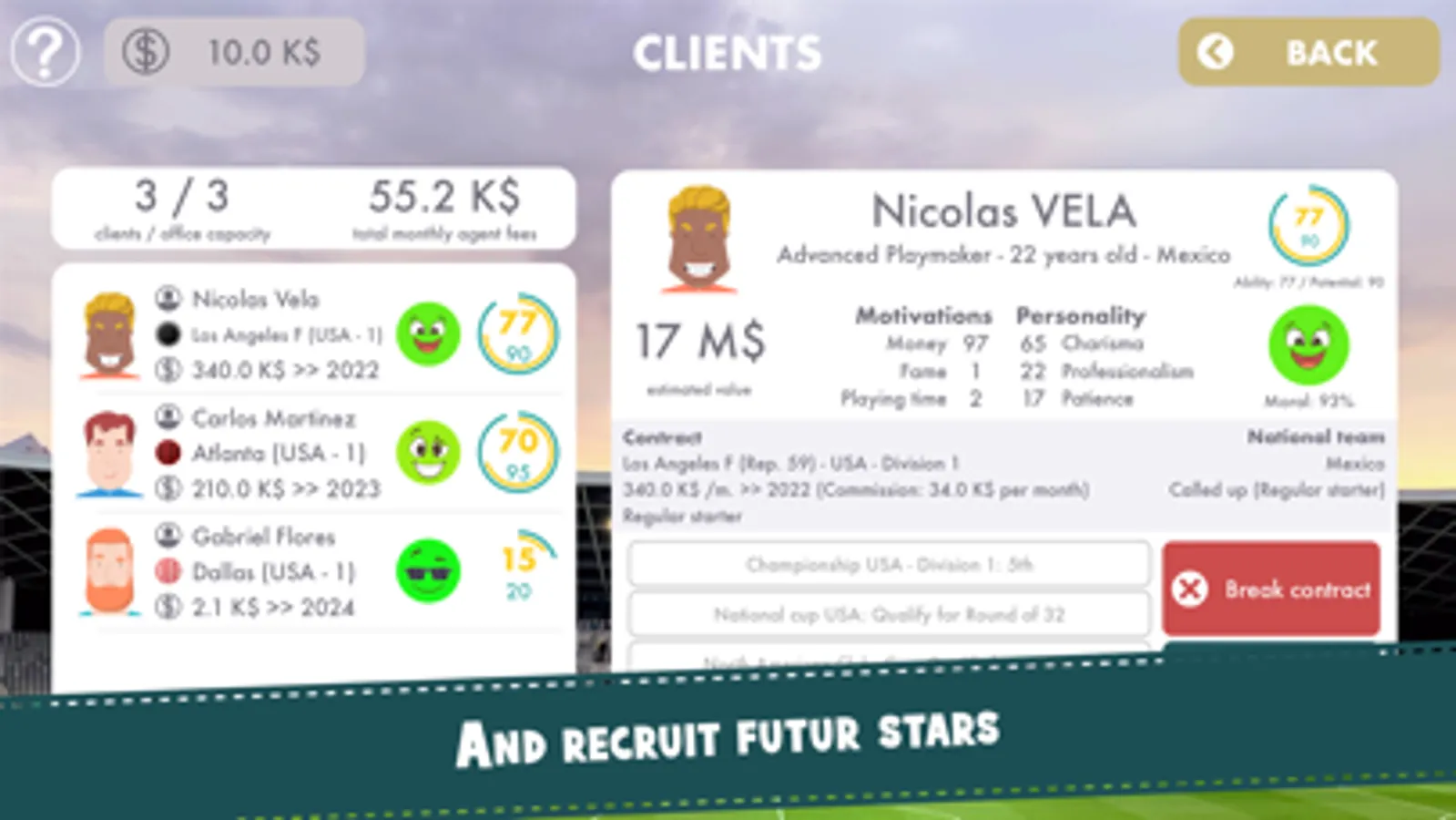 Manage your clients' careers, negotiate their contracts, their choice of transfers and advertising contracts.