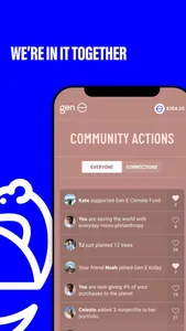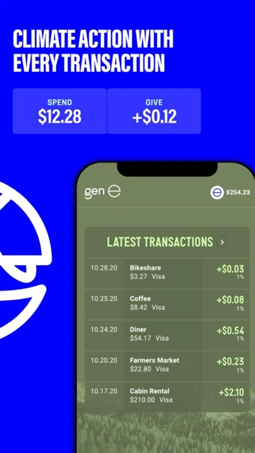 Automatically round up the change or donate a percent of everyday purchases to support environmental nonprofits fighting climate change. Since it's nearly impossible to avoid the negative environmental impacts of daily consumer habits, Gen E allows you to easily step up and give back to the planet with every swipe.
