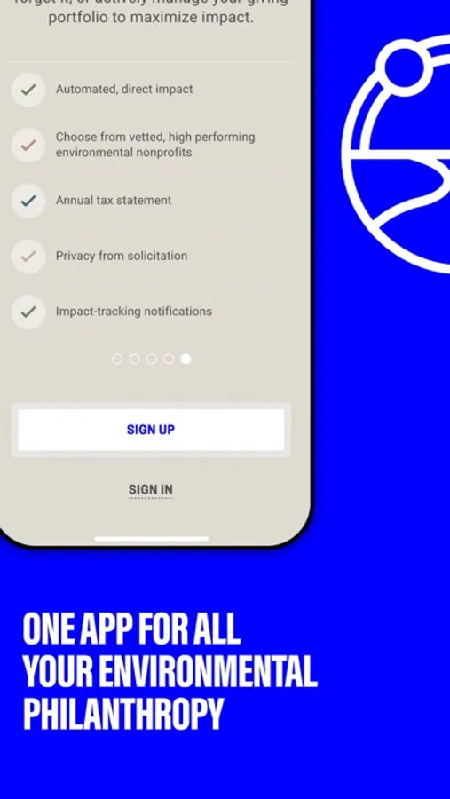Seamlessly align your lifestyle with your values of wanting a healthy planet by giving back to it with every swipe - something we call frictionless micro-philanthropy. This is the one-stop-app for next-gen philanthropists (you!) to fund climate solutions.