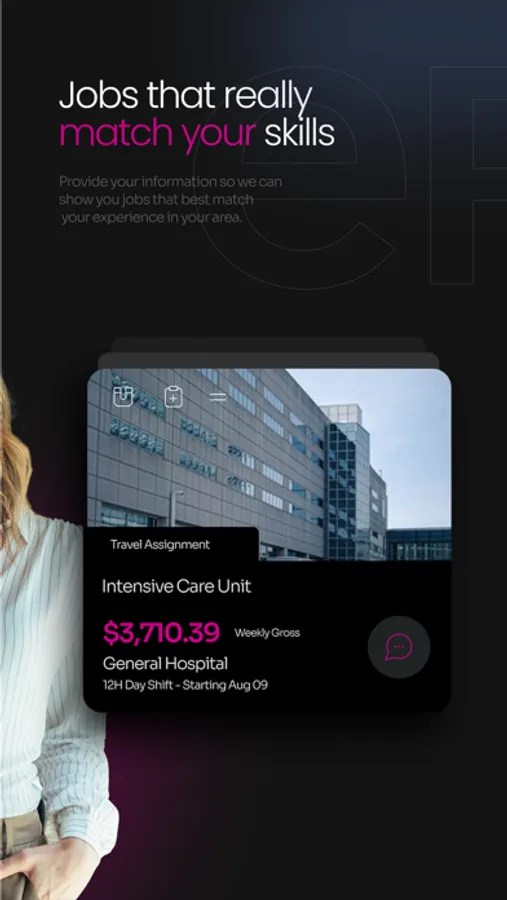 -Just tell eRiN what is important to you; beach, nightlife, shift, and the amount you want to make and see only those that meet your requirements. And then… start swiping the jobs for which you would like instant submission.