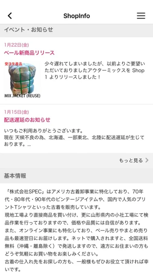 最新入荷やセール告知、商品や古着卸業のエトセトラを配信します。