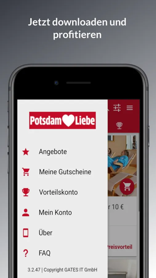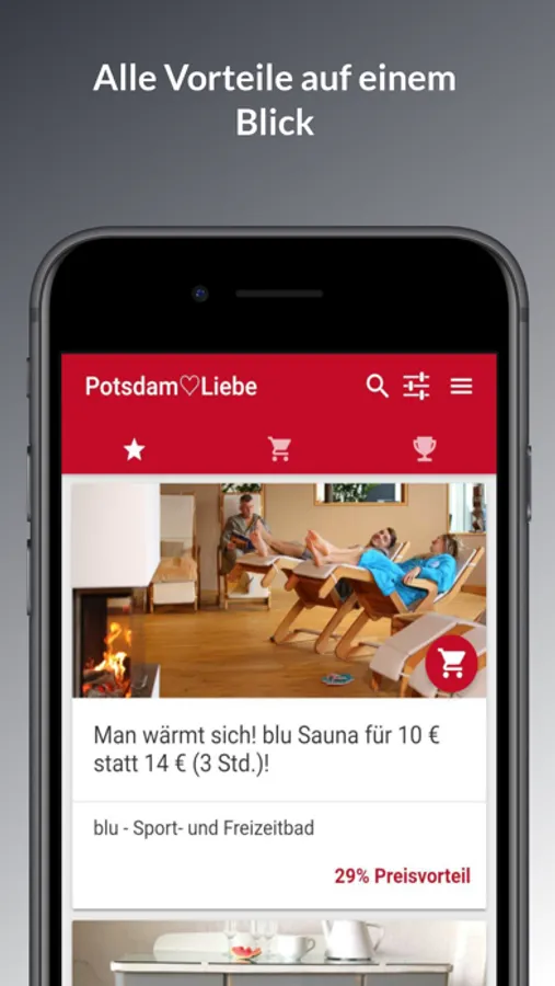 Die PotsdamLiebe App zeigt Ihnen alle Angebote übersichtlich dargestellt – ob unterwegs oder Zuhause. So können Sie sicher sein, dass Sie kein Angebot verpassen. Buchen Sie Ihre Gutscheine bequem und einfach mobil oder vom heimischen Sofa.